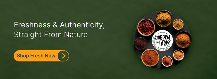 At Garden to Table, we bring you the authentic flavours you grew up with – warm, comforting, and made with care. From the earthy aroma of turmeric to the rich blend of sambar powder, every jar carries the taste of tradition and the love of homemade cooking. It’s more than just spice – it’s the flavour of home, shared with you.”