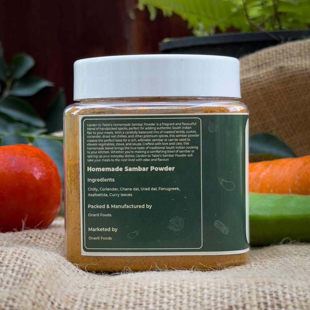 Ideal for making traditional sambar, rasam, vegetable curries, and lentil dishes, this homemade spice mix guarantees an authentic taste that enhances your cooking.