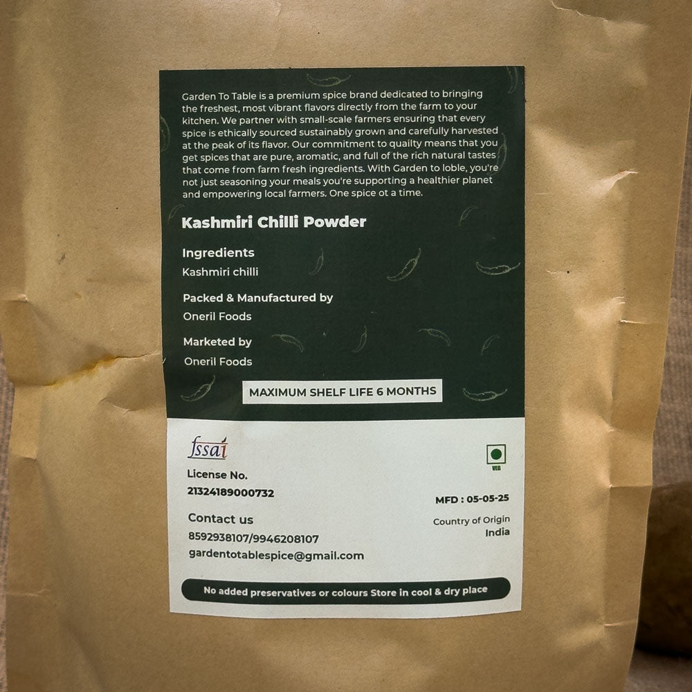 Bring authentic flavor and vibrant color to your dishes with our Premium Kashmiri Chilli Powder. Made from locally sourced, high-quality chillies, each batch is washed thoroughly, sun-dried, semi-roasted, and carefully ground to preserve its natural aroma and taste.
