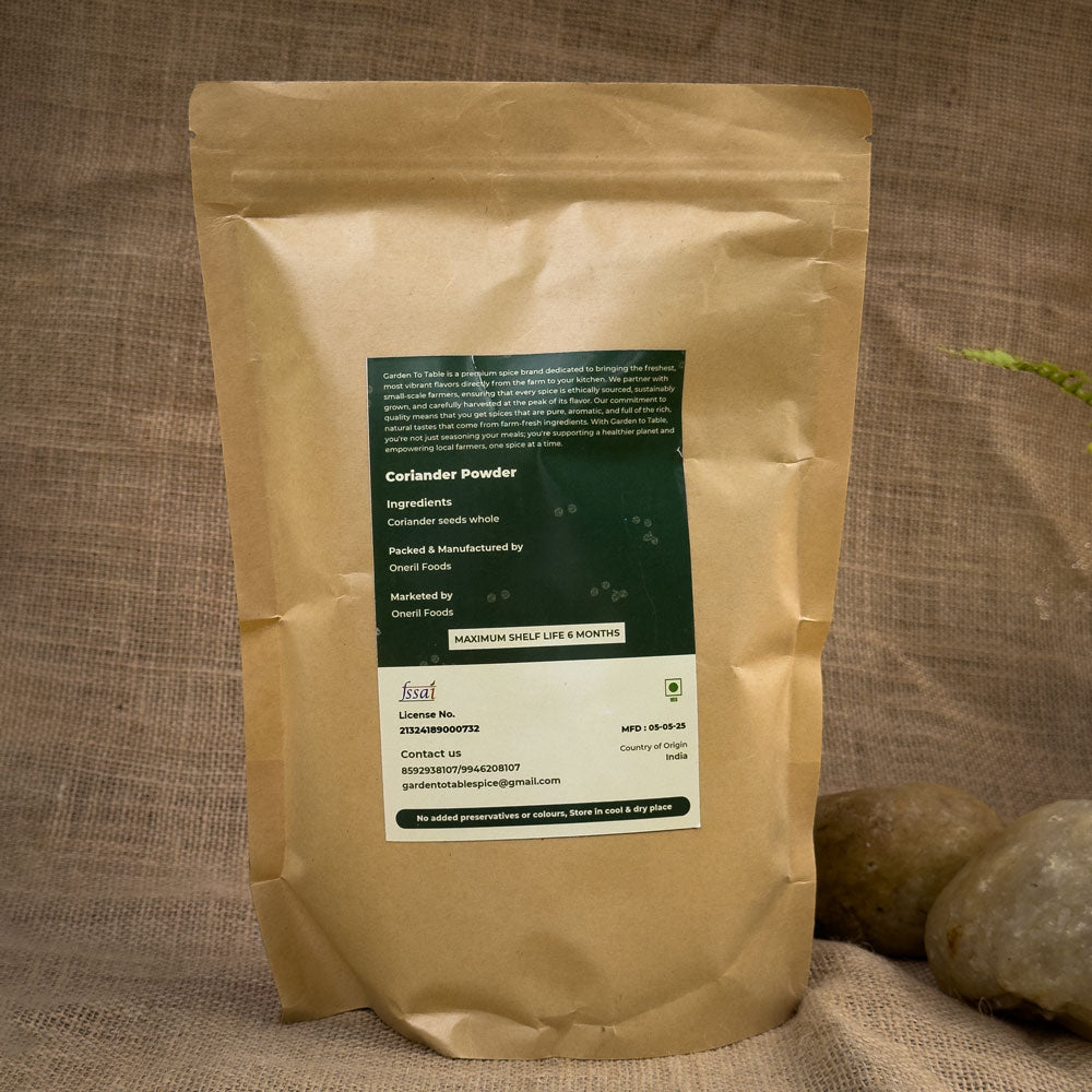 Enjoy the authentic taste of freshly ground Coriander Powder, made from the finest quality coriander seeds. Each seed is carefully washed, sun-dried, semi-roasted, and then ground to perfection, ensuring maximum freshness, longer shelf life, and a naturally enhanced flavor.